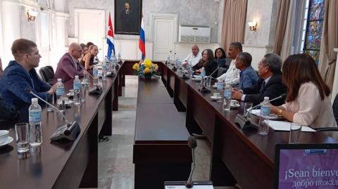 As part of the program of activities jointly organized by the Higher School of State and Government Cadres (ESCEG) and the Russian Academy of National Economy and Public Administration (RANEPA), attached to the President of the Russian Federation, on the occasion of the delivery of the Course on Selection, Evaluation, and Development of Managers and the second edition of the Public Administration Course for RANEPA students, within the framework of the Memorandum of Cooperation signed in September 2019 between both institutions, a delegation from ESCEG, headed by its Rector, Mercedes Delgado Fernández, and from RANEPA, headed by Ilya Borisovich Sheburakov, Deputy Director of the Higher School of Public Administration of the Presidential Academy, visited the headquarters of the Supreme People's Court. The delegation was received by Rubén Remigio Ferro, President of the highest court.