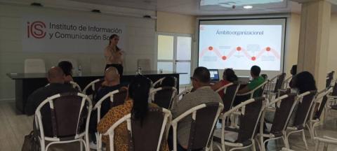 The Institute of Social Communication (ICS Cuba) welcomed students enrolled in the 10th edition of the Postgraduate Specialization in Public Administration at the Higher School of State and Government Staff, as part of the Social Communication course. The welcome was delivered by the Director of Institutional Communication, Berta Mojena Milián, and the First Vice President, Onelio Castillo Corderi, who held a fruitful discussion about the institute's implementation process, its main results, and challenges. Two lectures were then given by Dr. Hilda Saladrigas Medina, National Award winner for Social Communication and ESCEG faculty member, and Anamaris Solorzano, General Director of Organizational and Community Communication, on the social communication system and the implementation process of the Social Communication Law, which will come into effect in 2024. The students then exchanged with the institute's Branch School and toured Radio Reloj and the Caribe Channel, and witnessed the live broadcast of the midday newscast. The visit provided a space for learning and commitment, where the challenges generated by the communication dynamics of this important organization were evident, always ensured through the use of science and innovation.