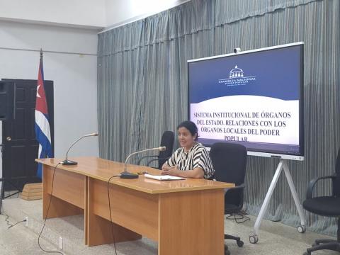 La primera actividad estuvo centrada en los asuntos jurídicos, oportunidad que permitió a los presentes, visualizar videos con importantes intervenciones a cargo de Homero Acosta Álvarez, Secretario de la Asamblea Nacional del Poder Popular y del Consejo de Estado de la República de Cuba, Nancy Acosta, Jefa de la Dirección de Atención a las Administraciones Locales del Poder Popular en el Consejo de Ministros y el General Luis Pérez Róspides, jefe de la dirección de Perfeccionamiento de Órganos y Sistemas.