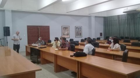 La Escuela Superior de Cuadros del Estado y del Gobierno (ESCEG) y la Universidad Agraria de la Habana "Fructuoso Rodríguez Pérez" (UNAH) desarrollaron un importante intercambio de trabajo sobre los servicios con terceros. En la reunión el vicerrector MSc. José Ramón Diaz Delgado, compartió con los visitantes las experiencias y buenas prácticas alcanzadas por la ESCEG en la terciarizacion de sus servicios en los 10 años de creada la institución. Participaron en el encuentro el rector de la UNAH, Dr.C Antihus Alexander Hernández Gómez acompañado de otros directivos de la universidad y miembros del Consejo de Dirección de la escuela.